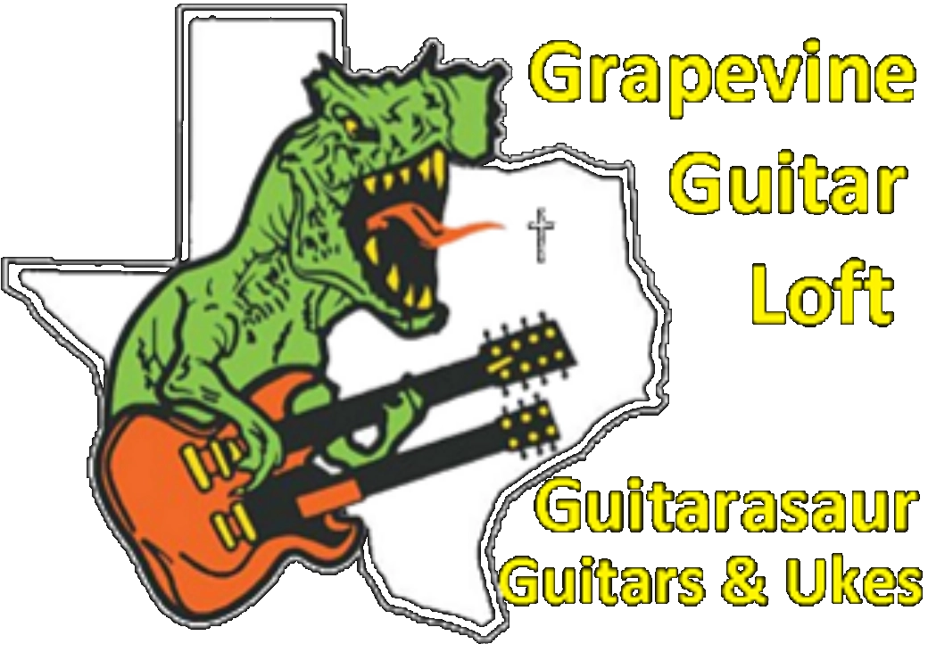 Guitarasaur Guitars & Ukuleles operates inside Lone Star Antiques in Haltom City, serving the North Fort Worth area with a unique blend of instrument sales