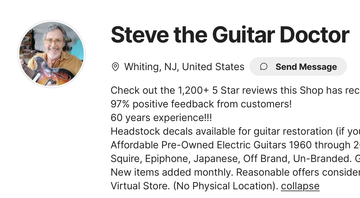 Steve’s Guitars Shop in Whiting, New Jersey brings six decades of guitar repair expertise to musicians throughout the region. Operating as “Steve the Guitar Doctor,”